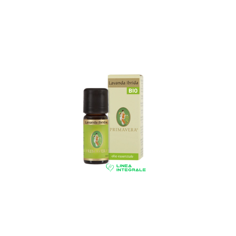 Olio essenziale di lavanda ibrida, Lavandula hybrida, 100% puro, naturale e totale, proveniente da coltivazioni biologiche controllate. Estratto per distillazione in corrente di vapore dai fiori.